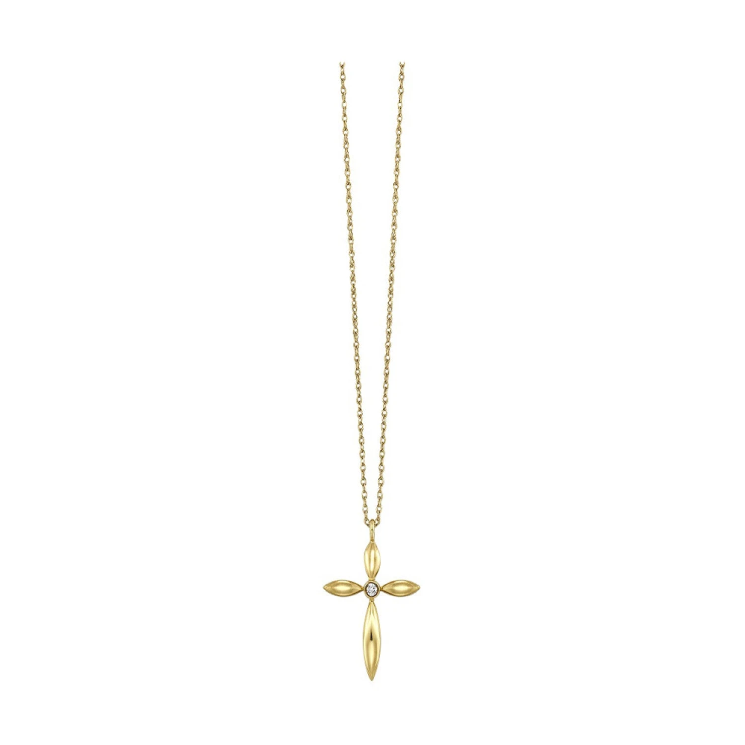 10K Yellow Gold Cross Diamond Solitaire Fashion Chain & Pendant (0.02CTW)
