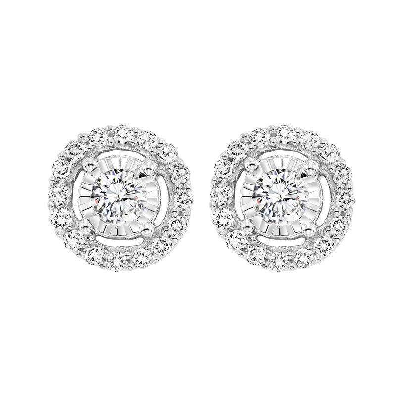 Crafted in precious 14K White Gold, these stud earrings are each set with 17 sparkling, round-cut diamonds. Total diamond weight is 0.50 CTW.