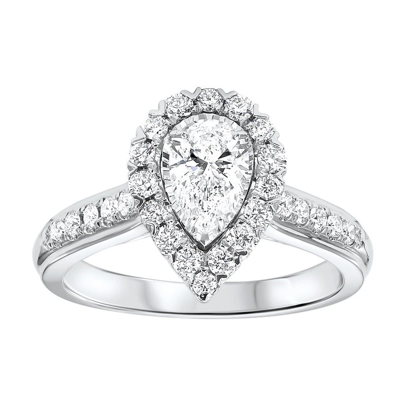Our beautiful 14K Tru Ref Pear Halo Prong Ring 1CT is the perfect jewelry choice for you or your loved one.