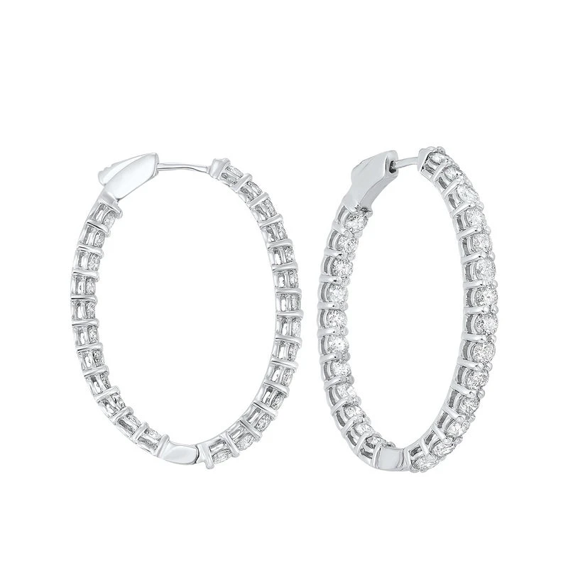 14K White Gold Prong Inside Outside Diamond Hoop Earrings