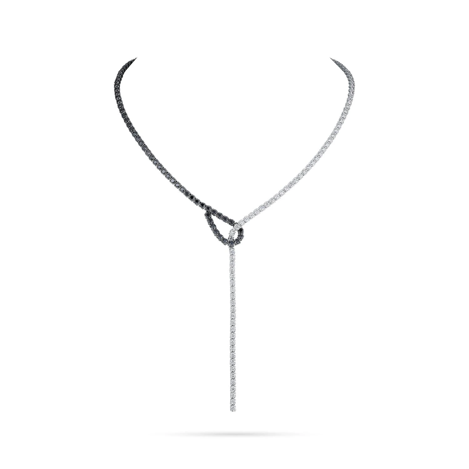 Adorn yourself with the timeless elegance of this fantastic A Link designed 9.57 ctw Black & White Diamond Lariat Necklace crafted from161 diamonds and set in 18K white gold! This 16″ necklace radiates sophistication and provides the perfect balance of luxury and effortless beauty. Make a bold statement at any occasion with this fashion forward accessory. Discover the exceptional diamond fashion experience at International Diamond Center, and explore the full A Link selection!