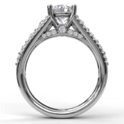 FANA Contemporary Diamond Solitaire Engagement Ring Setting With Baguettes And Round Diamond Accents
