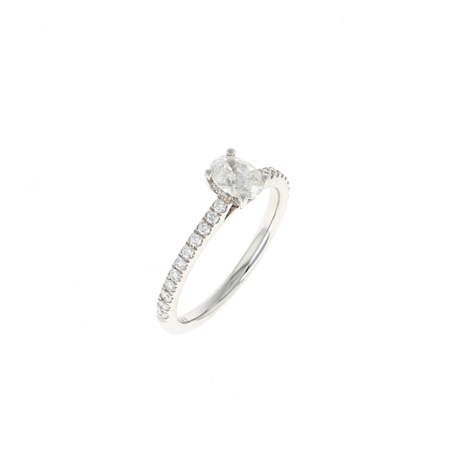 A divine white gold half-way diamond pave setting with approximately a 0.23 round brilliant center diamond. Totaling 0.35 ctw.