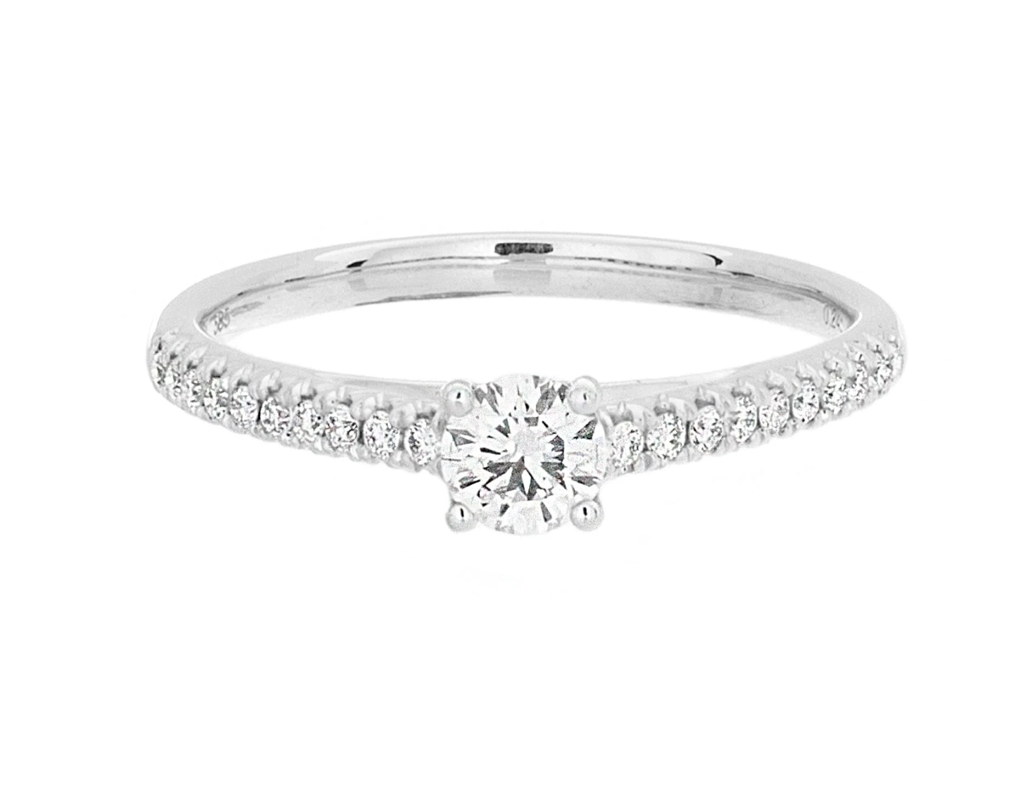 Complete Rings White Gold With 0.24 CTW Round Diamond Diamond Center Stone Classic Engagement Ring