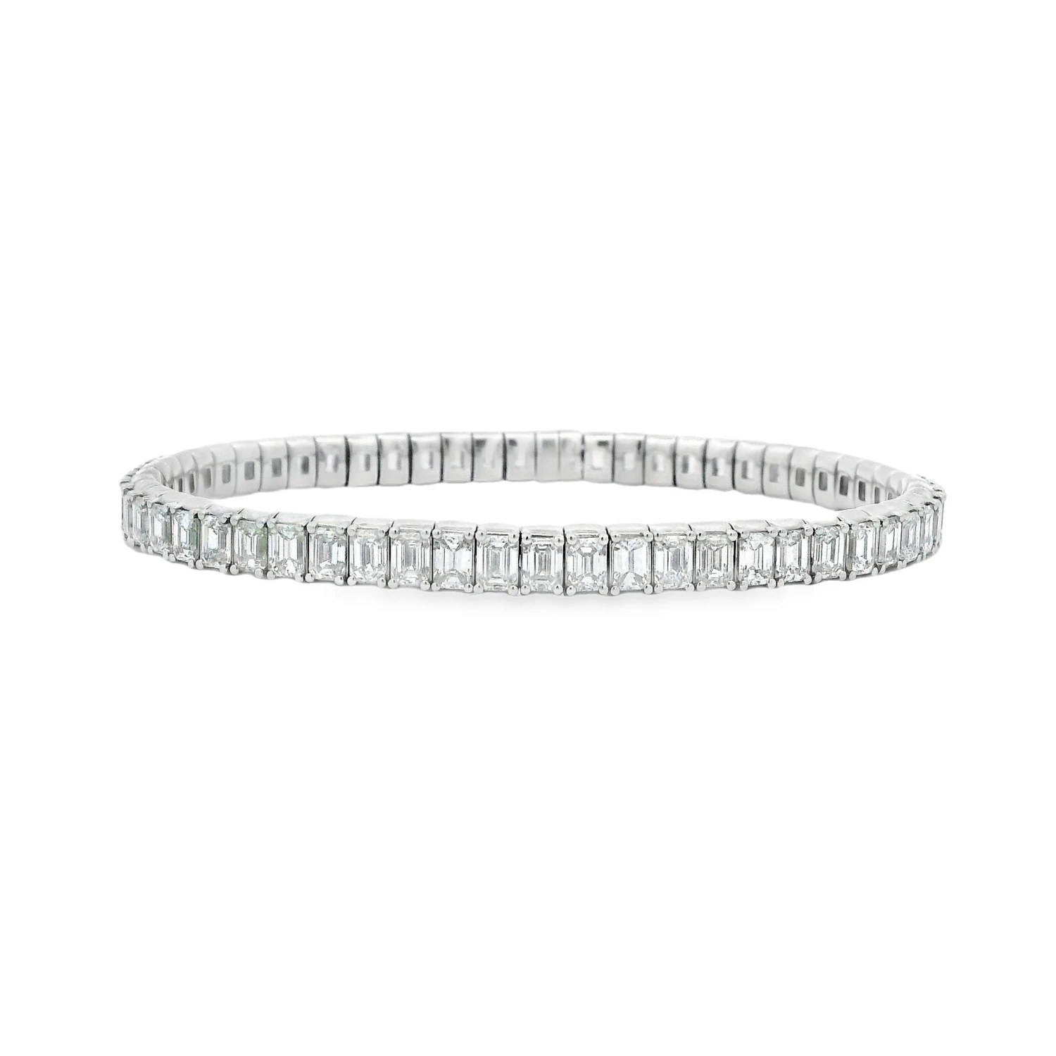 Indulge in the breathtaking beauty of this 18K White Gold Diamond Flex Bracelet, featuring a stunning 11.14 CTW of sparkling emerald cut diamonds.