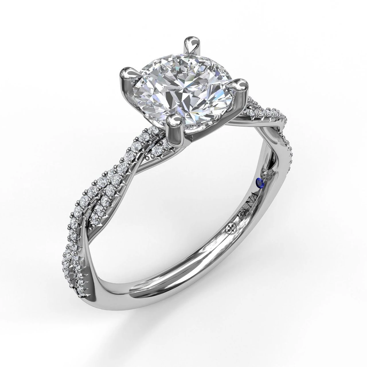 This FANA engagement ring is available in your choice of Platinum, White Yellow or Rose 18KT or 14KT gold.