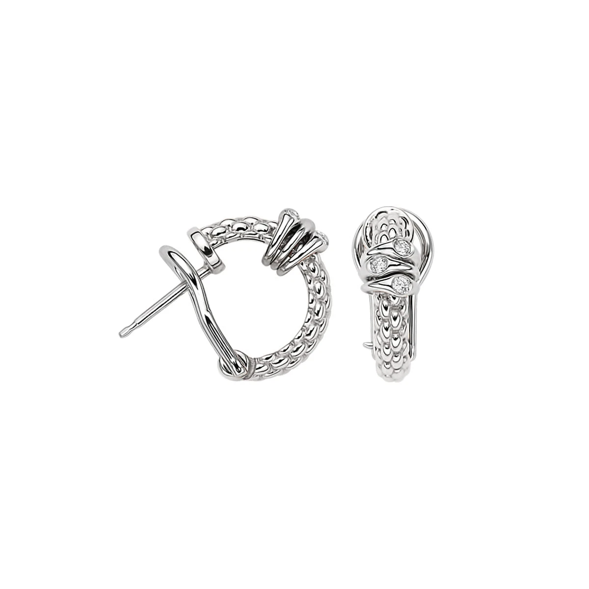 Indulge in the luxurious elegance of Fope 18K White or Yellow Gold PRIMA Leverback Hoops featuring shimmering 0.08 CTW Diamond Rondels. Elevate your style with these exquisite hoops that radiate beauty and sophistication.