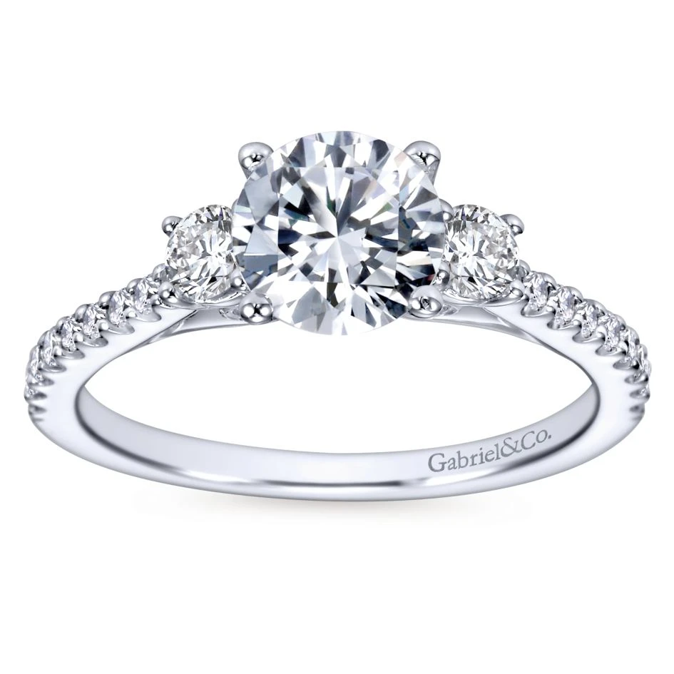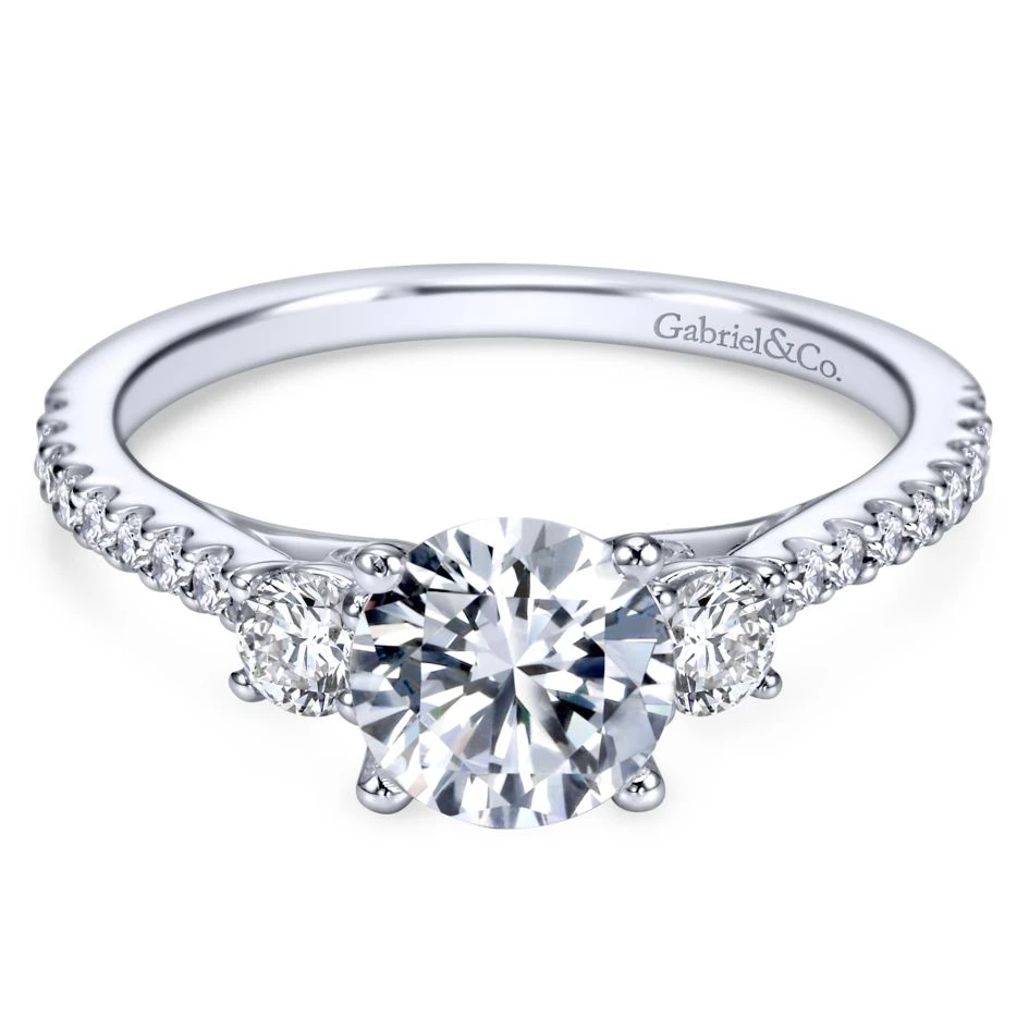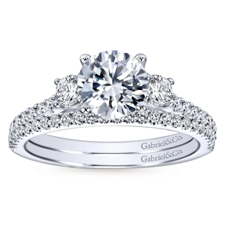 Gabriel Bridal Collection White Gold Diamond 3 Stones Engagement Ring And French Diamond Accent Shank (0.45 Ctw)