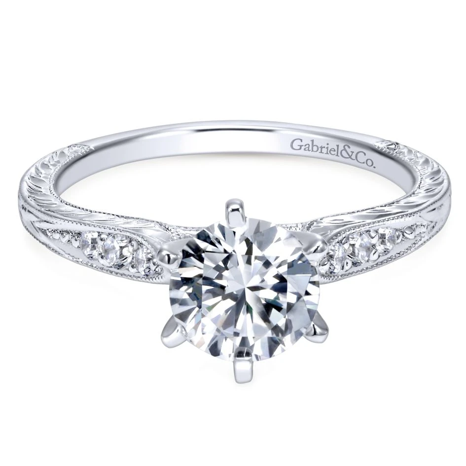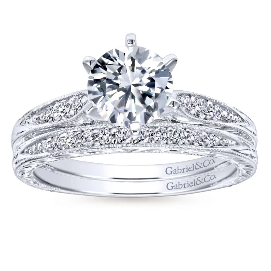 SKU: C2HVC 3826574622773 Categories: Engagement Rings, Vintage Tags: Category:Engagement Rings, Category:Vintage, Collection:Bridal, CTW Size:0.01ct-0.5ct, Designer:Gabriel & Co., Engagement Collection:Gabriel Bridal, Engagement Main Style:Vintage, Metal Type:White Gold