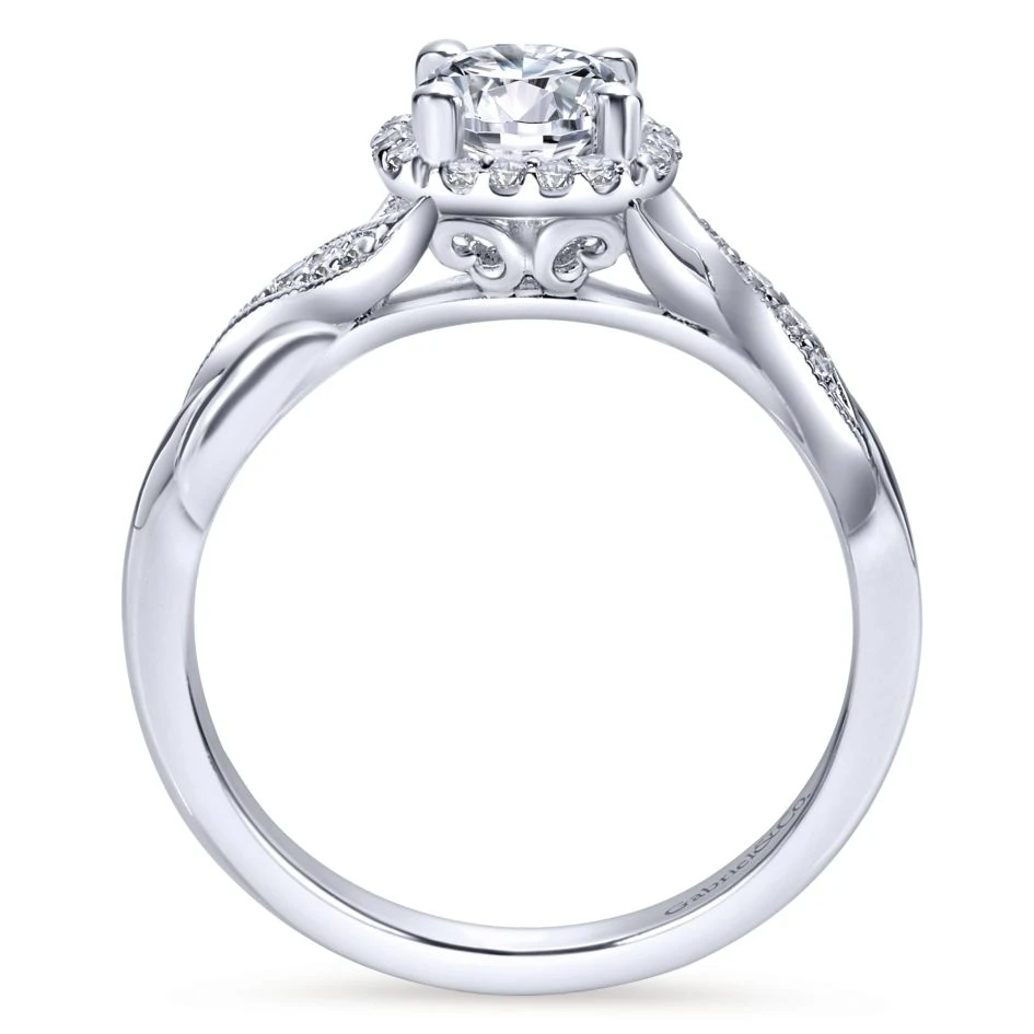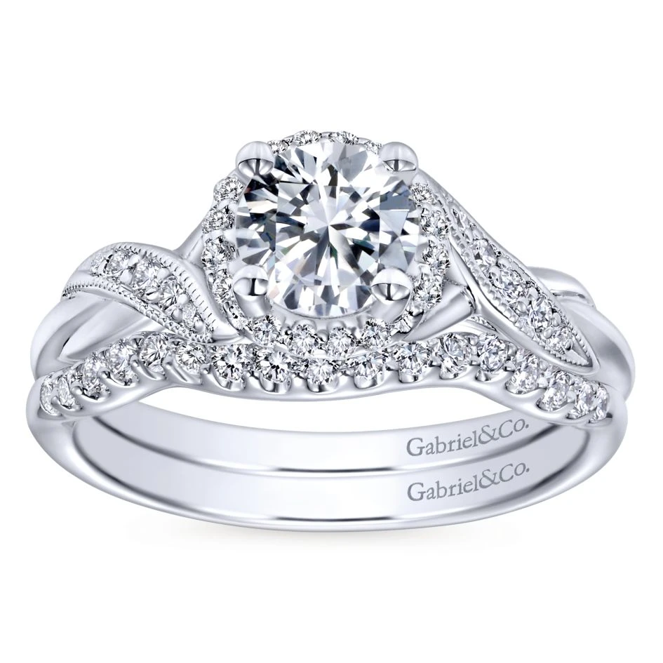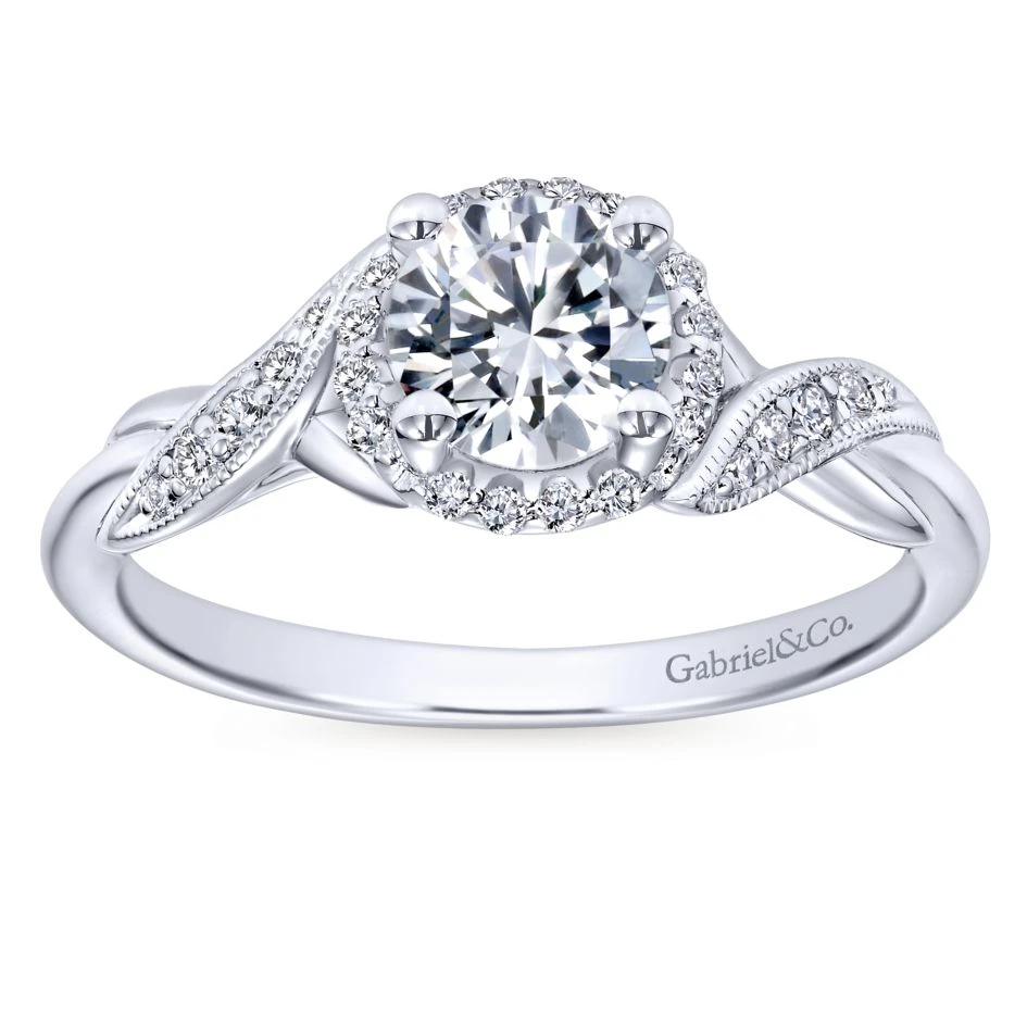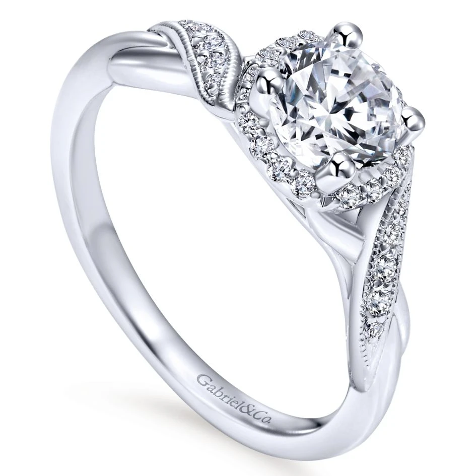 Gabriel Bridal Collection White Gold Twisted Shank Diamond Halo Engagement Ring (0.14 Ctw)