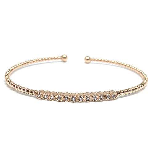 This 14K rose gold bracelet has a carat weight of 0.14ctw, making it an eye-catching accessory.