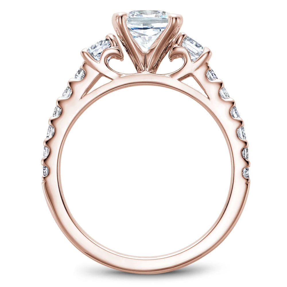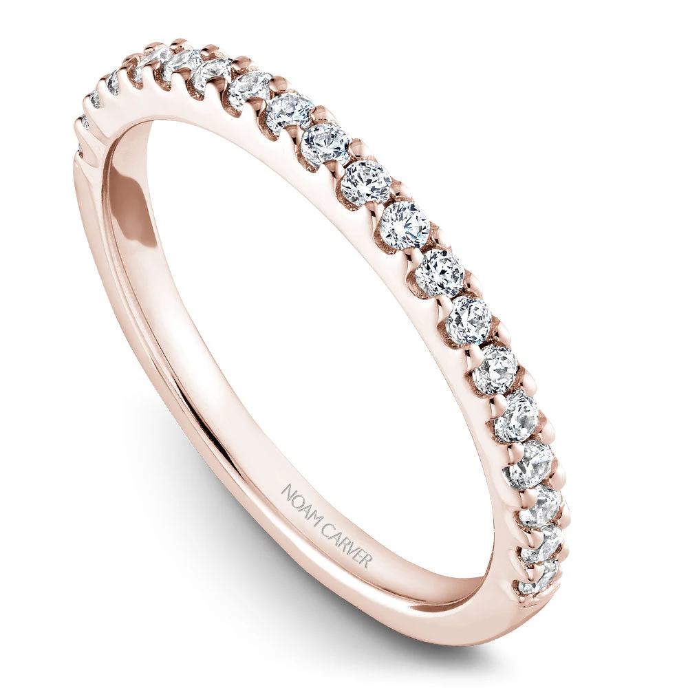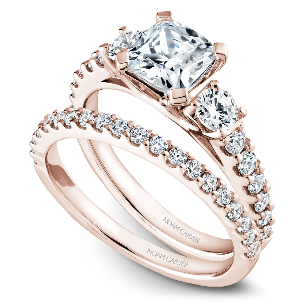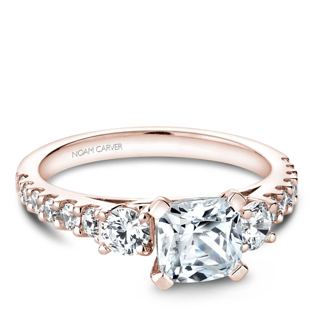A Noam Carver rose gold engagement ring with 14 diamonds.