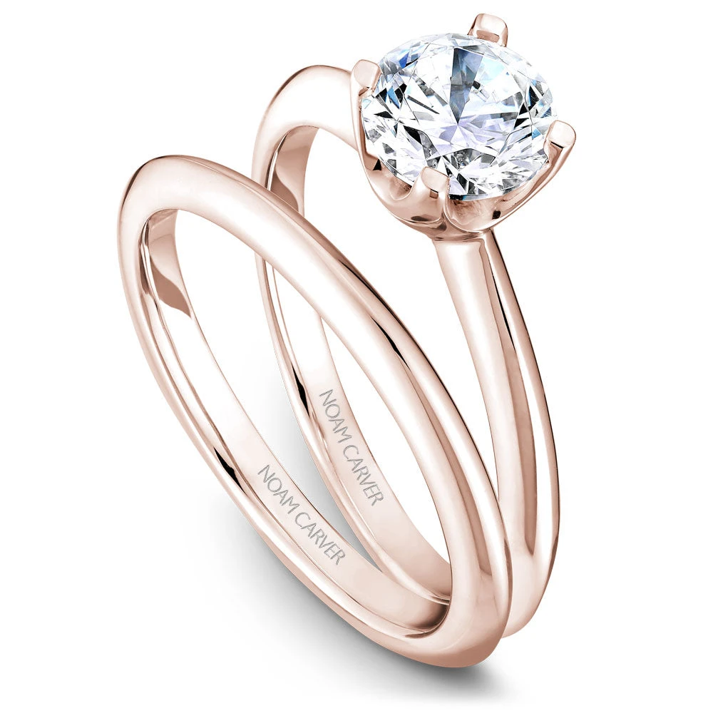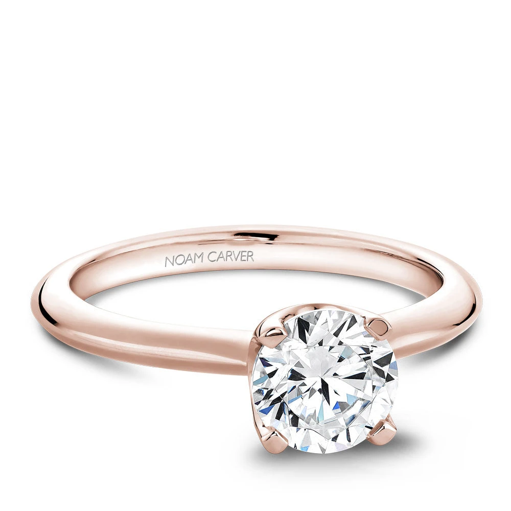 A Noam Carver rose gold engagement ring with a round centerpiece.