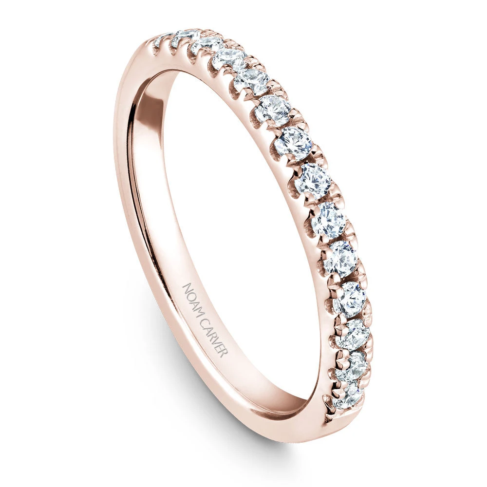 A Noam Carver rose gold engagement ring with a floral halo and 34 diamonds.