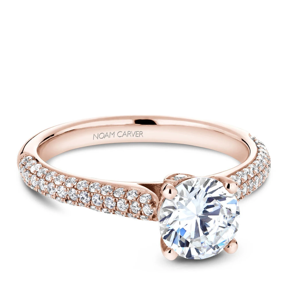 A Noam Carver rose gold engagement ring with 86 diamonds.