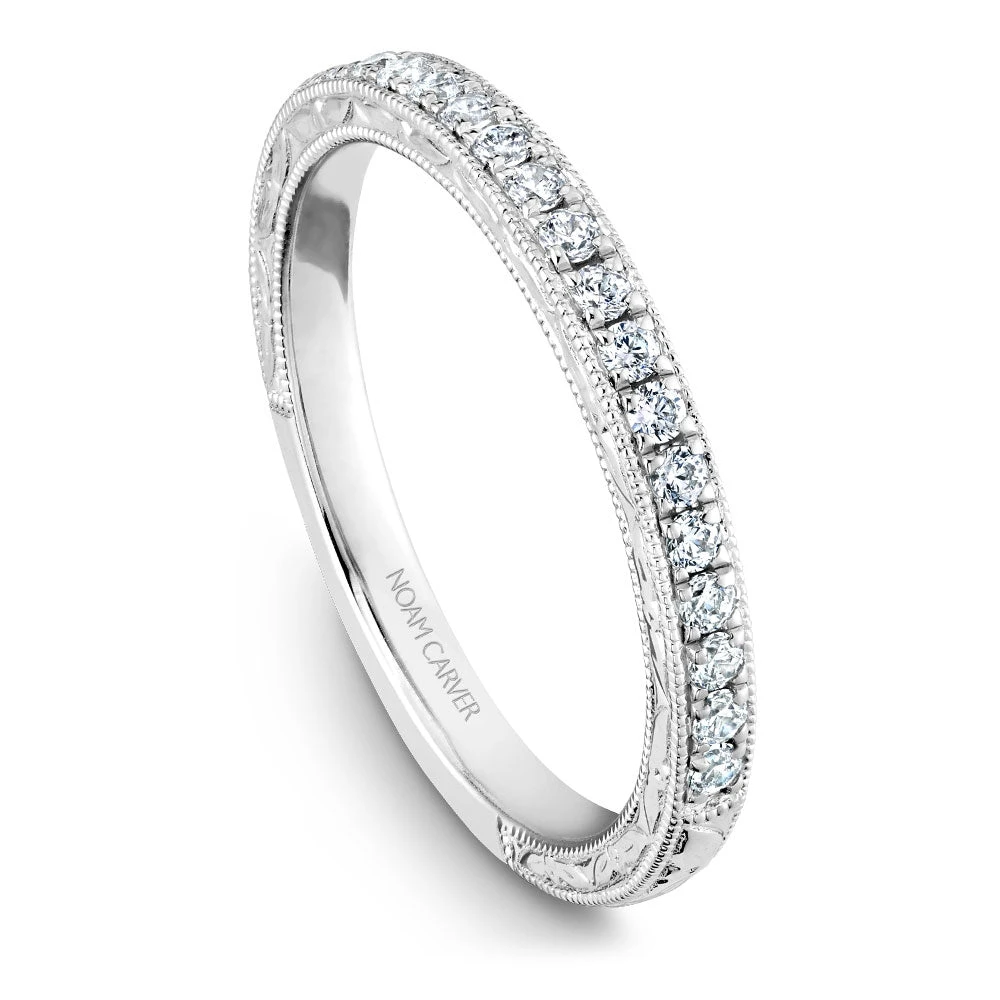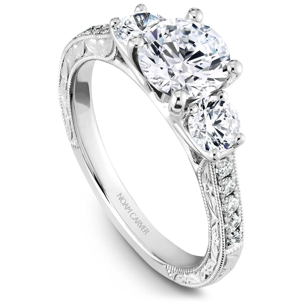 A Noam Carver white gold engagement ring with 12 diamonds.
