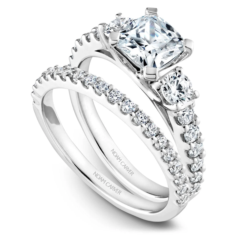 A Noam Carver white gold engagement ring with 14 diamonds.