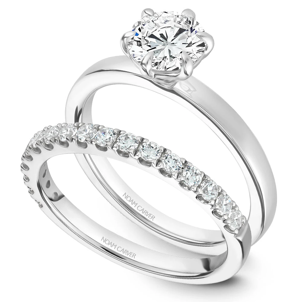 A Noam Carver white gold engagement ring with a round centerpiece.