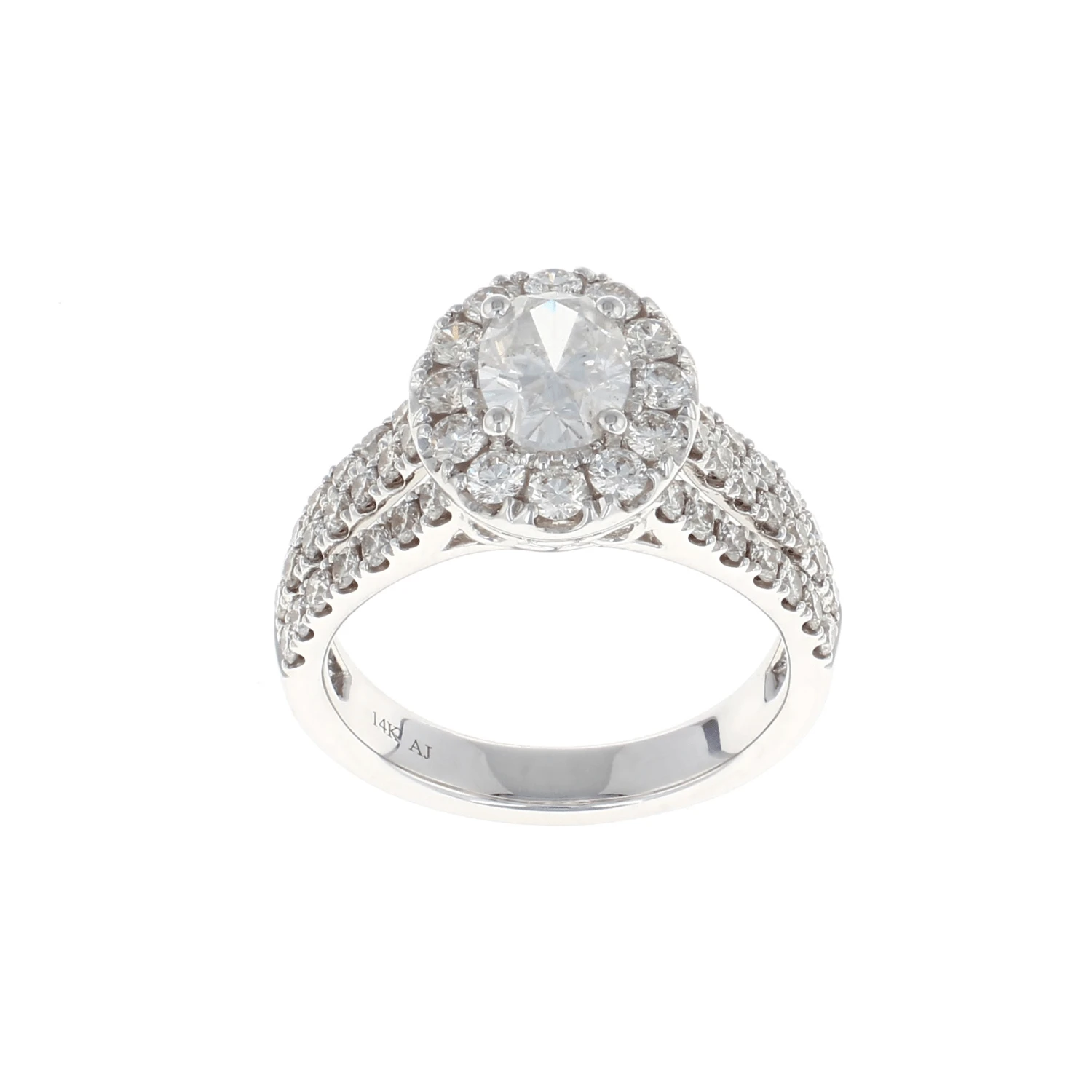 This beautiful Halo Complete engagement ring with a sparkling Oval (1.00CTW) Center stone and a 3 row pave semi mount set in 14K White Gold is a romantic way to ask, “Will you marry me?”
