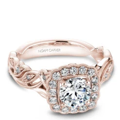 Noam Carver Rose Gold Halo Diamond Engagement Ring Setting With Floral Shank (0.30 CTW)