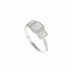 Three Stone Emerald Cut Halo Complete Engagement Ring (1.30CTW)