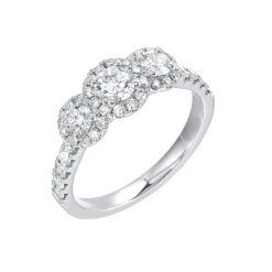 Three Stone Halo Complete Engagement Ring (1.01CTW)