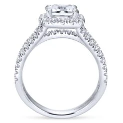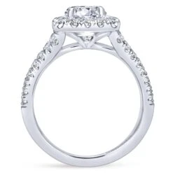 Gabriel Bridal Collection White Gold Diamond Diamond Accent Split Shank Halo Engagement Ring (0.83 Ctw)