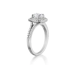 Henri Daussi Cushion Double Halo Complete Engagement Ring Setting (0.97CTW)