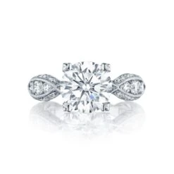 Tacori 18k White Gold Classic Crescent Round Diamond Engagement Ring Setting (0.41 CTW)