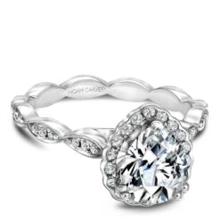Noam Carver White Gold Shared Prong Floral Halo Engagement Ring Setting (0.93 CTW)