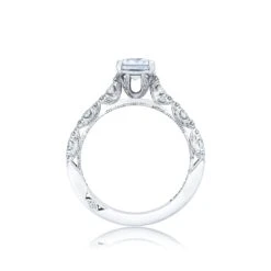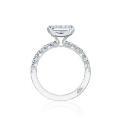 Tacori 18k White Gold Petite Crescent Princess Diamond Engagement Ring Setting (0.39 CTW)