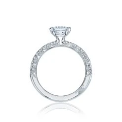 Tacori 18k White Gold Petite Crescent Princess Diamond Engagement Ring Setting (0.57 CTW)