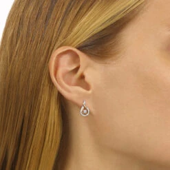 Two Tone Sterling Silver Rhythm Of Love Diamond Love Knot Earrings