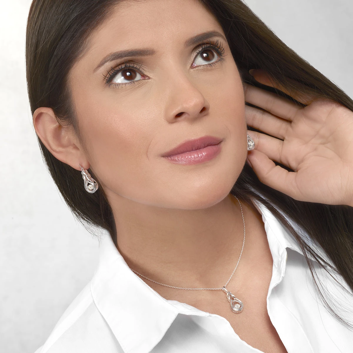 This silver Rhythm of Love Diamond earrings feature an intertwining metal design set with 14 round-cut diamonds.