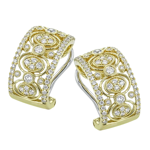 These stunning earrings have a byzantine quality and feature sparkling diamonds set in textured gold orbs and framed by prong-set diamonds.