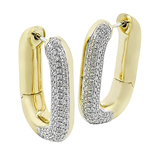An everyday classic, these beautiful, two-tone earrings feature an array of dazzling diamonds along their half edge.