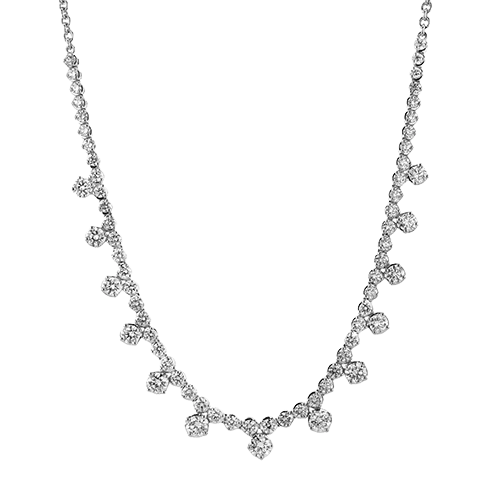 This striking necklace makes a bold statement with shimmering diamond clusters along almost the entire length of the chain.