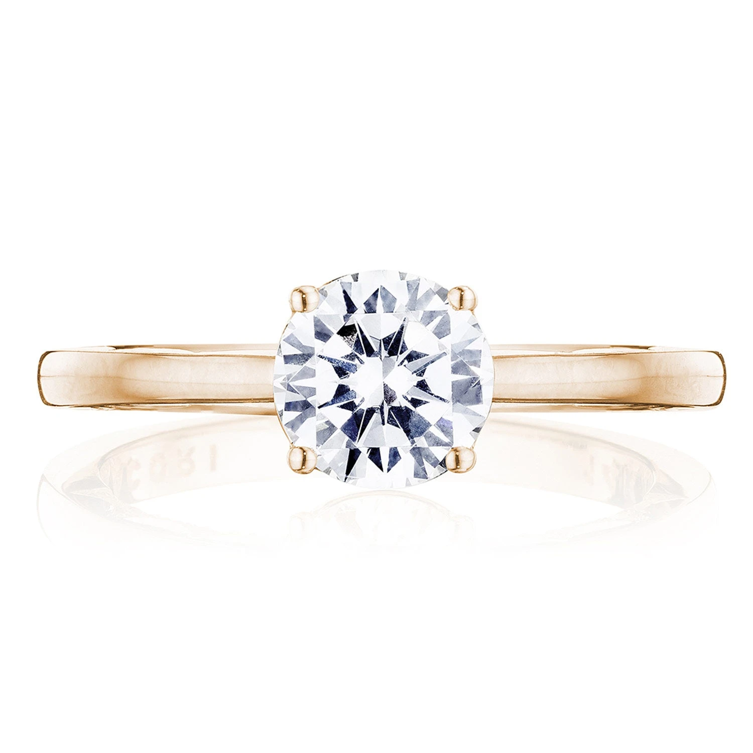 The beauty in the simplicity of this round cut diamond engagement ring is amplified by a brand new crescent inner face, with a diamond-cuddled detailing underneath the crescent.