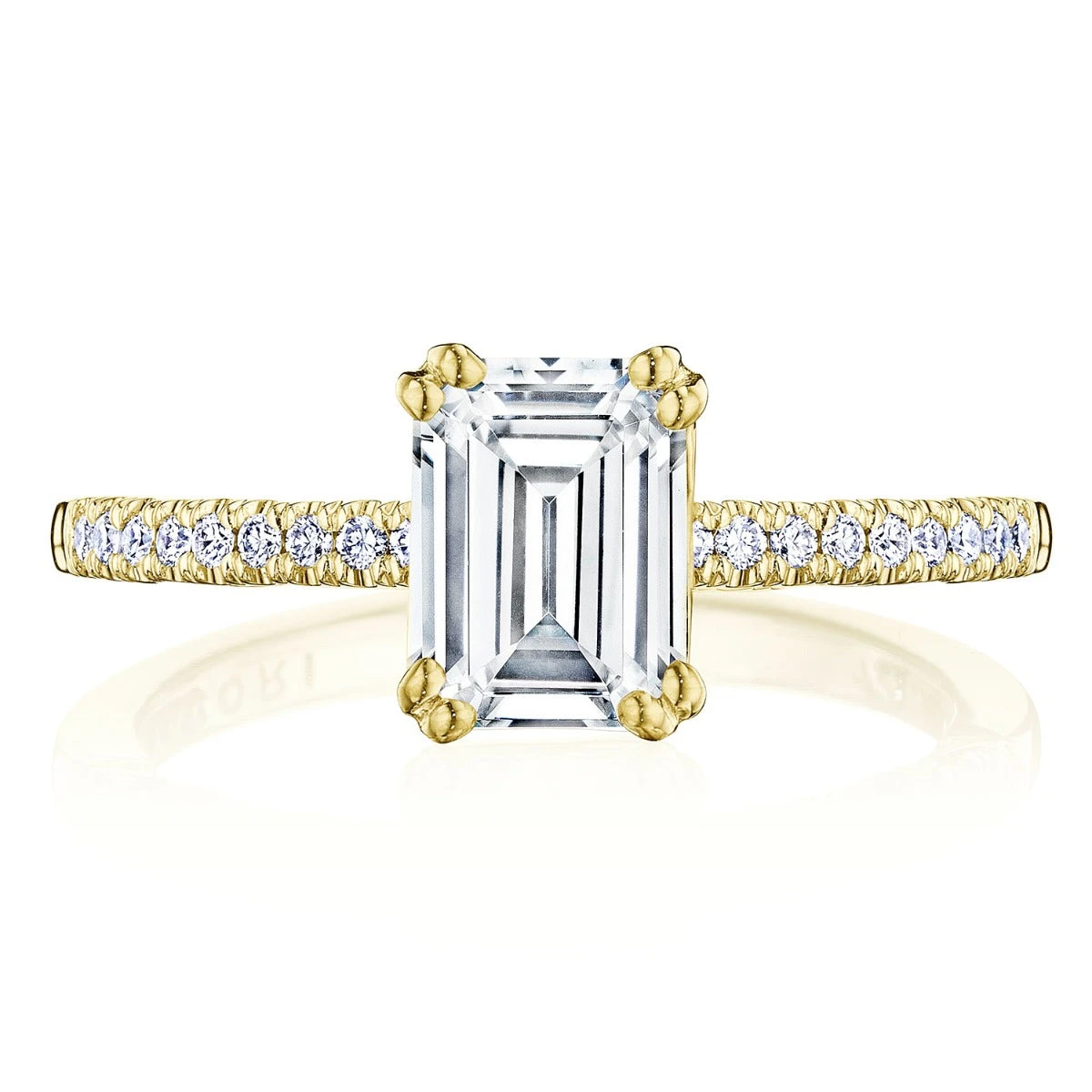 Love in bloom. The beauty in the simplicity of this oval cut diamond engagement ring is amplified by a brand new crescent inner face, with a diamond-cuddled detailing underneath the crescent.