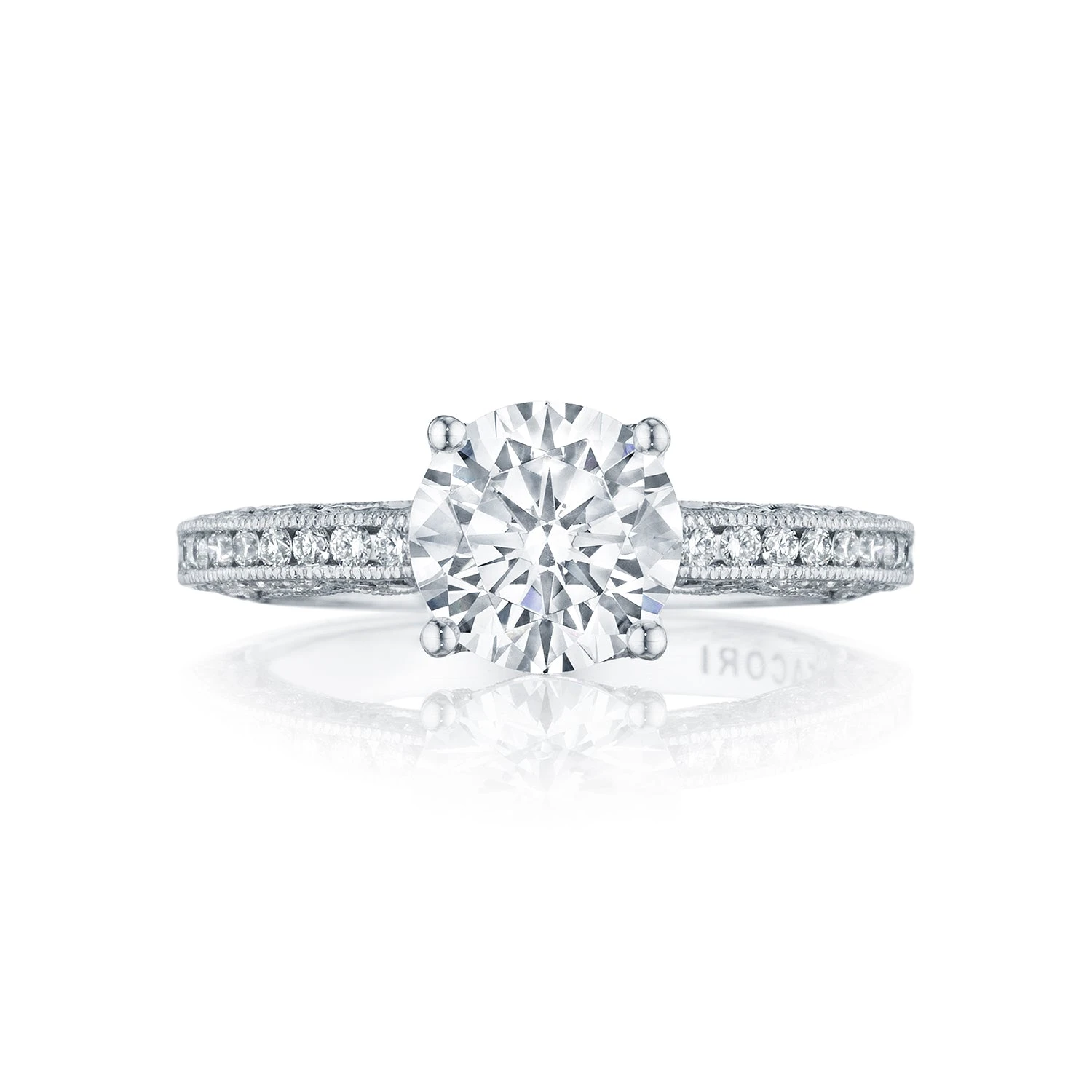 Three diamonds are set within each Classic Crescent in this band to represent your past, present, and future. The open gallery of the Classic 360 foundation allows you to view the center stone from all angles.