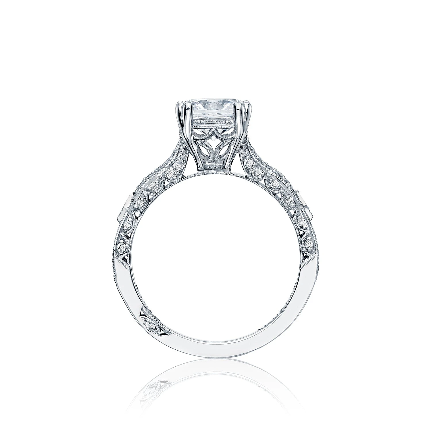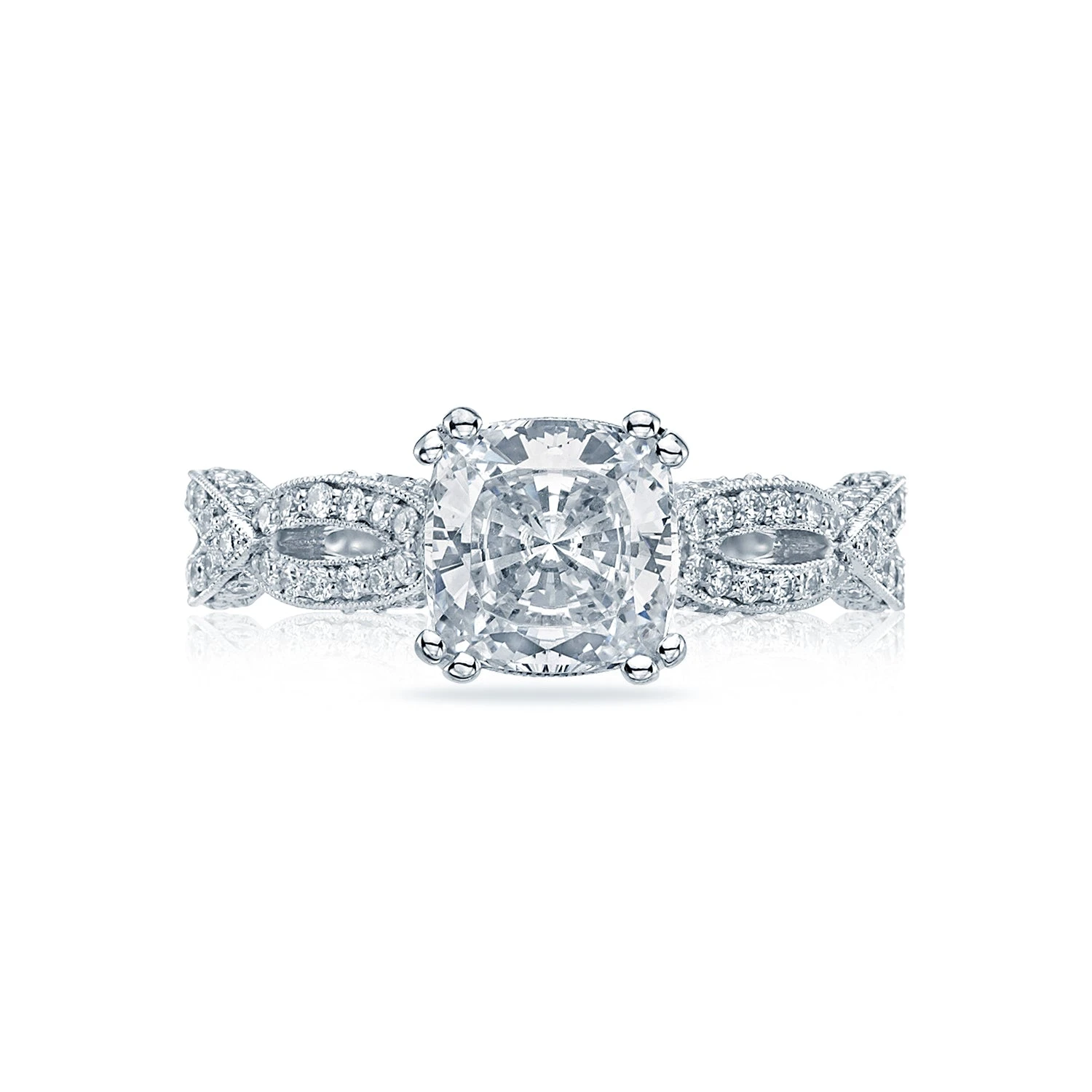 Be the first to review “Tacori 18k White Gold Ribbon Cushion Diamond Engagement Ring Setting (0.36 CTW)” Cancel reply