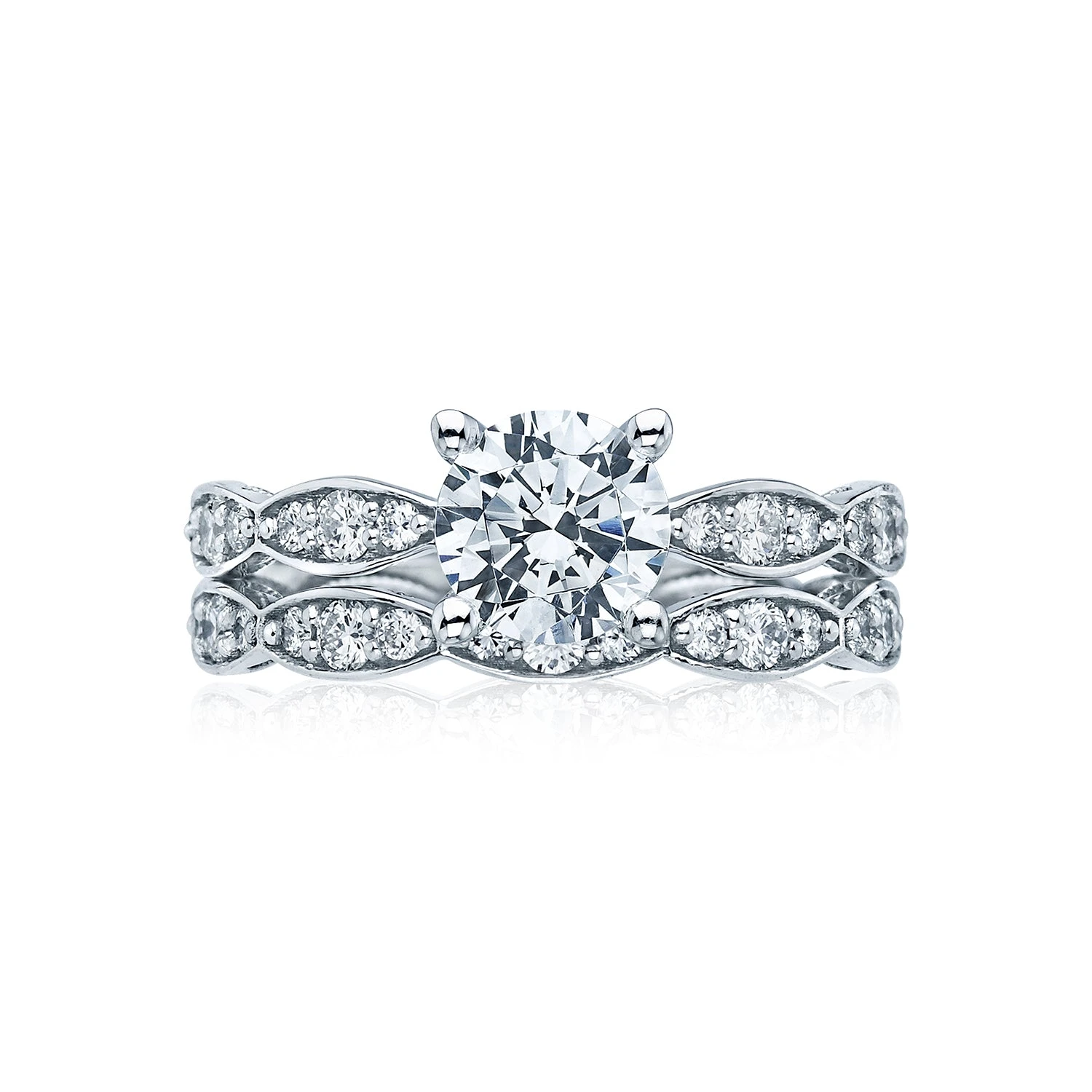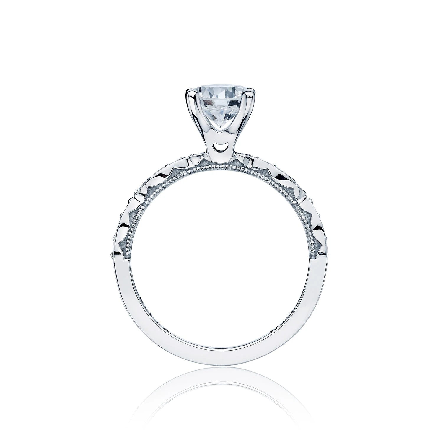 Be the first to review “Tacori 18k White Gold Sculpted Crescent Round Diamond Engagement Ring Setting (0.28 CTW)” Cancel reply