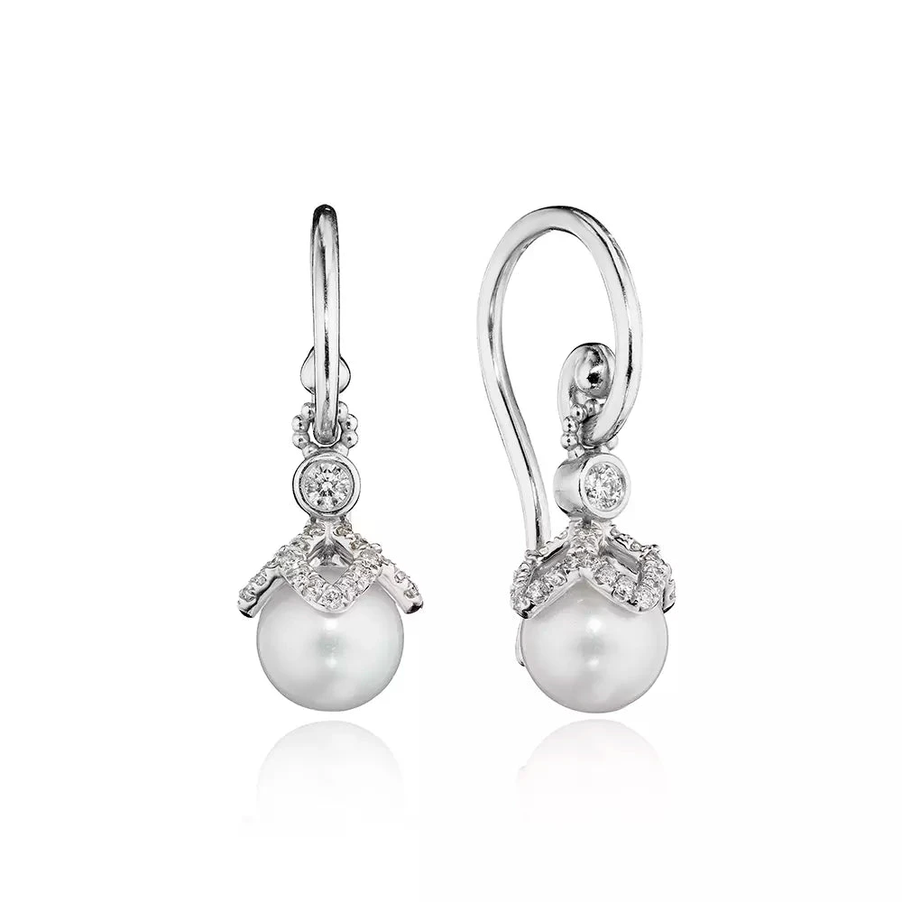 Adorn your ears with timeless elegance when you wear the Reverie Filigree Petal Diamond & Pearl Dangle Earring. The shining 18K gold setting showcases 0.45CTW diamonds and a central pearl for an effortless luxe look. Enchanted elegance starts with these earrings. Indulge in luxury by choosing from 18K white, or yellow gold.