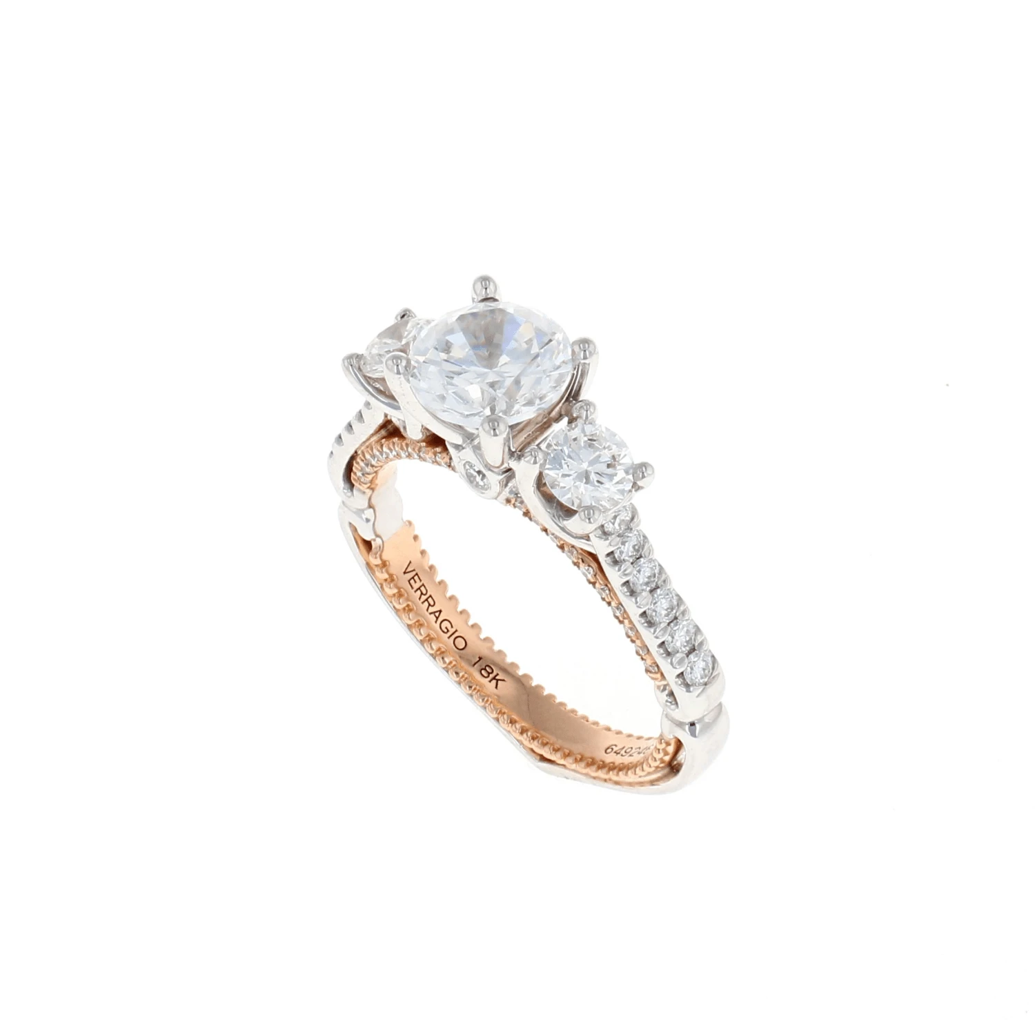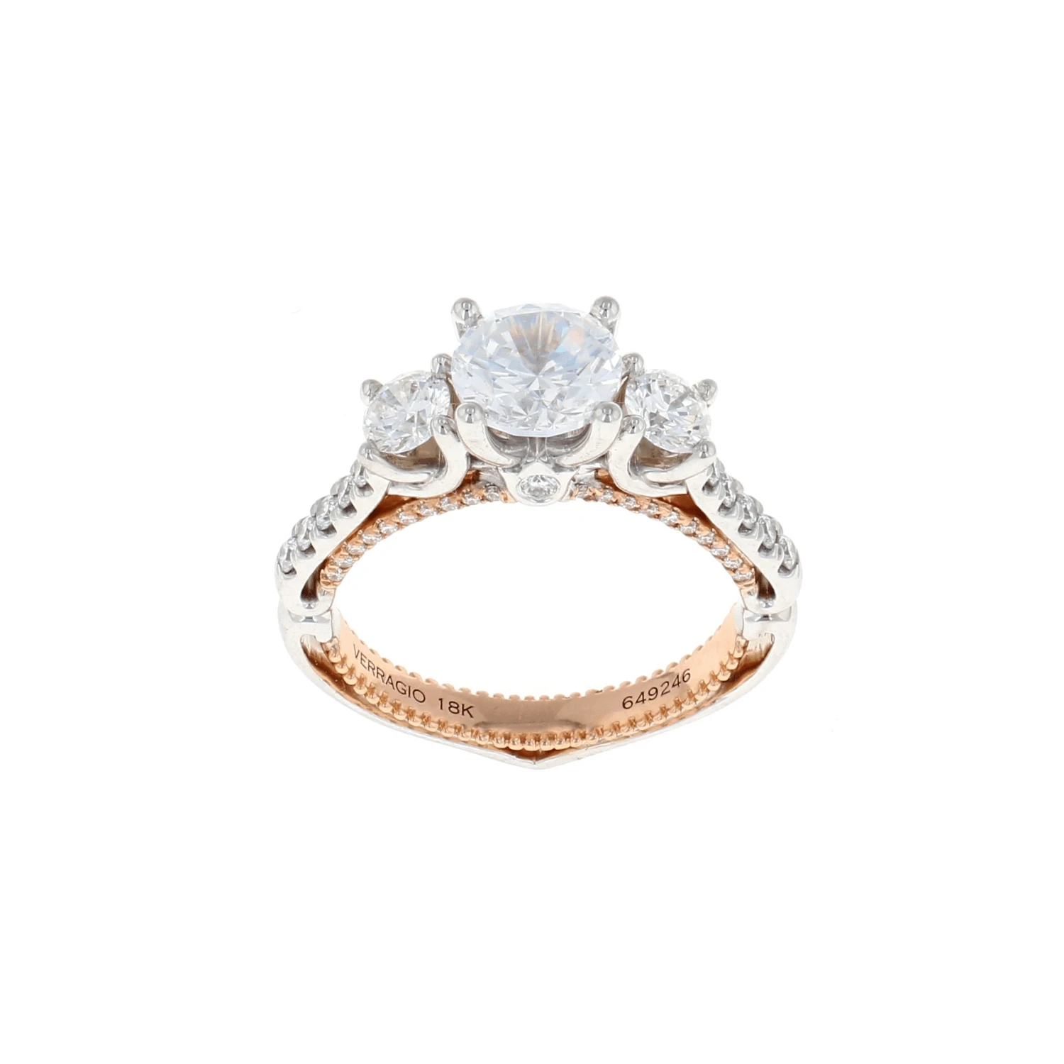 Outstanding Verragio Couture designed Engagement ring featuring 0.85CTW diamond semi mount in a two tone 14K White & Rose gold setting.