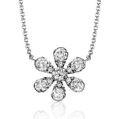 This lovely Zeghani 14k white gold flower pendant is a part of our nature lover collection and contains .51 ctw of shining round brilliant white diamonds.